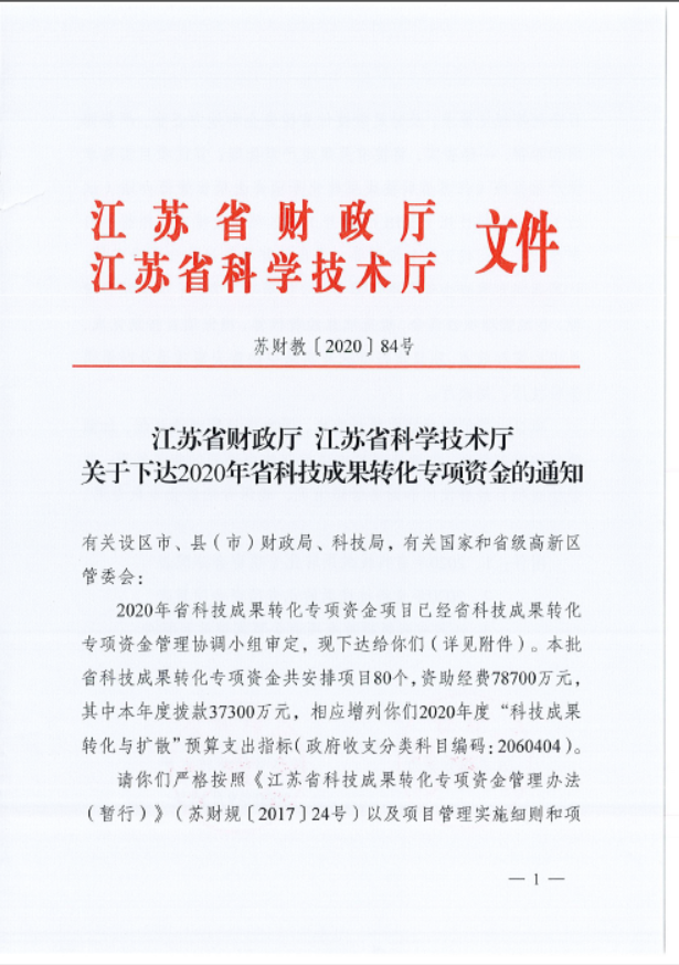 2020年江蘇省科技成果轉化專項資金項目立項80項,其中常州6家企業獲此殊榮,維爾利集團為其中之一。
